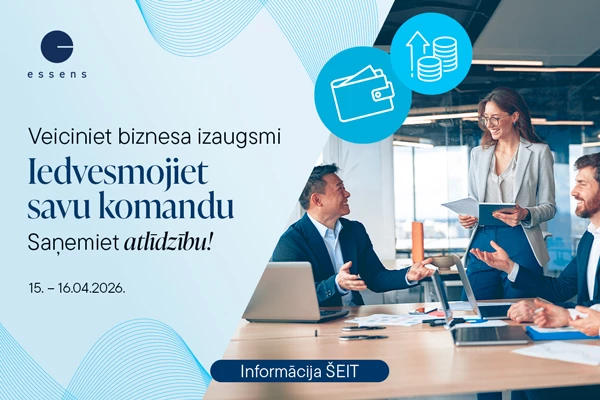 Kļūstiet par daļu no veiksmīga, starptautiska uzņēmuma un veidojiet savu biznesu kopā ar ESSENS! Mēs Jums piedāvājam pārbaudītu biznesa modeli, kas ļaus ne tikai sasniegt finansiālu neatkarību, bet arī iedvesmot citus. Pie mums Jūs saņemsiet pastāvīgu atbalstu, profesionālas apmācības un pievilcīgus apbalvojumus, kas motivēs Jūs attīstīties tālāk.